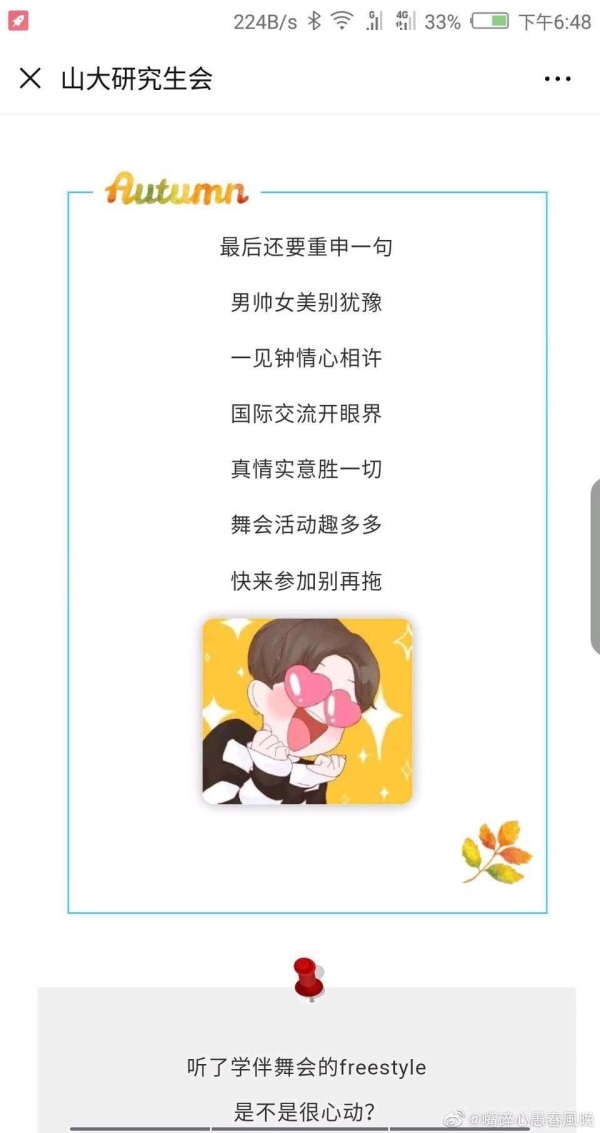 《关于公布2018“学伴”成组结果及第一次“学伴”活动见面Party的通知》( 网页链接:http://t.cn/AiOfbqCA)