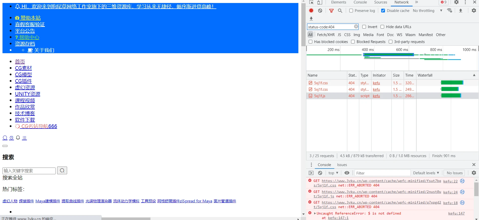 C引用是乱的,不是CDN问题,缺少文件:https://www.3vku.cn/wp-content/cache/wpfc-minified/fsut7bqs/9iyba.css 你把这个wpfc-m...