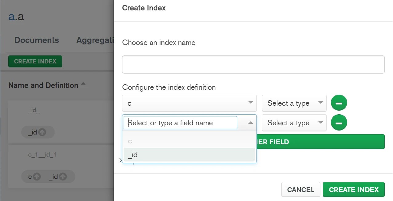 刚发现 MongoDB Compass Create Index 这里的字段可以自己输入。