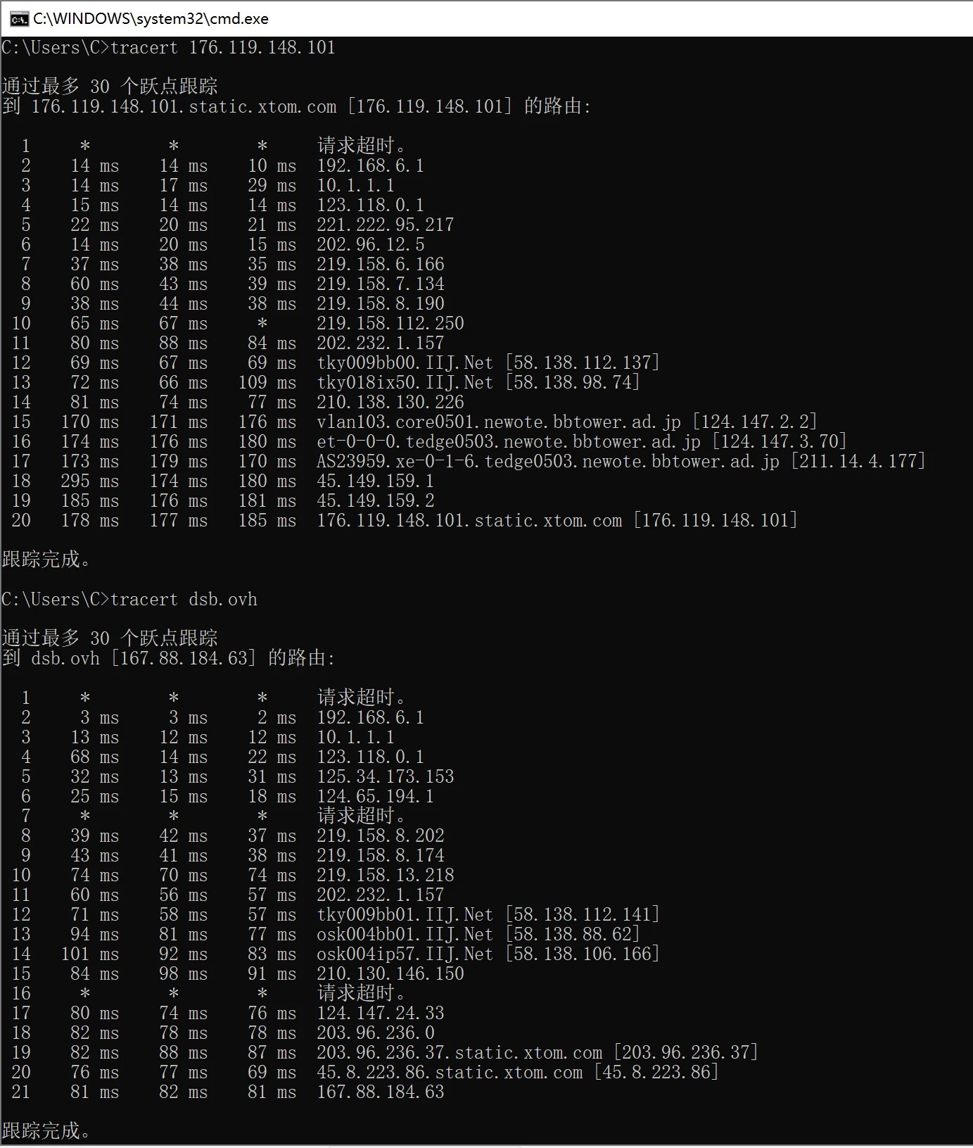 后者狗云,不知为啥延迟低一些,难道是托管机房在大阪?