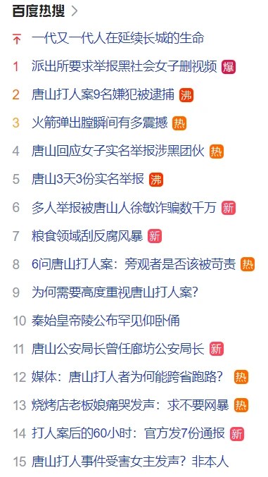 现在青蛙女热搜30条就有20条是唐山烧烤店事件